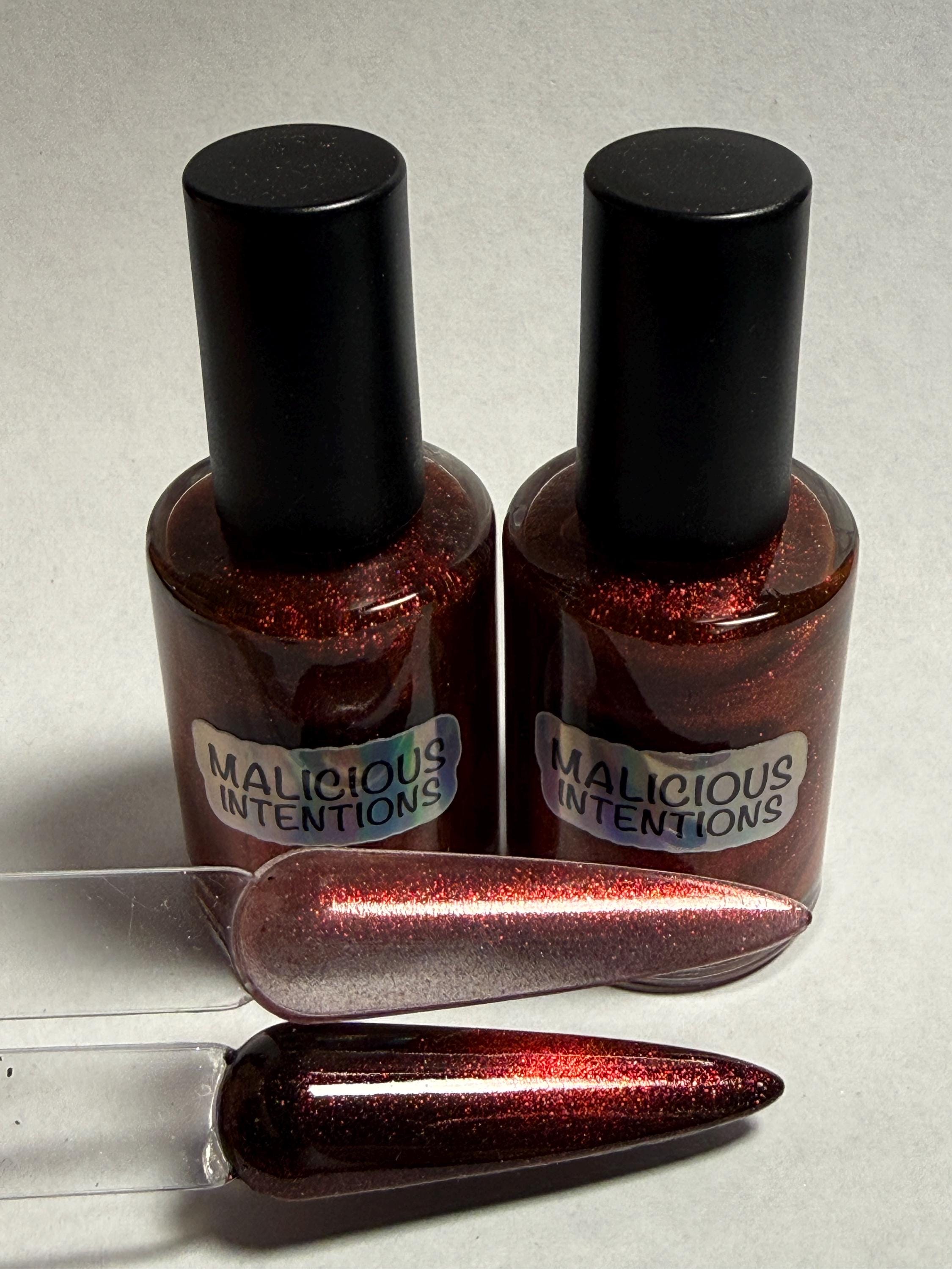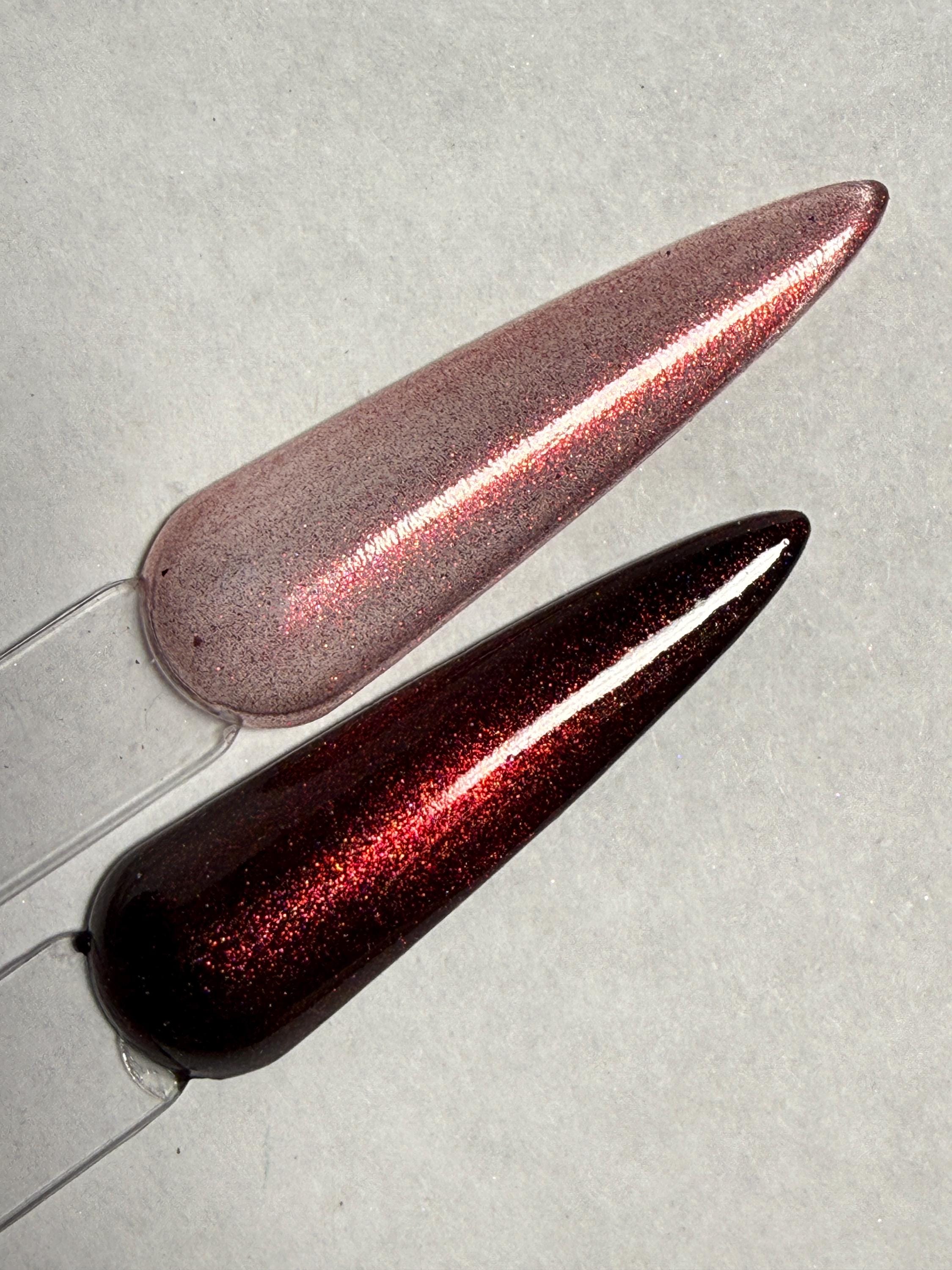 This polish comes in either 5ml or 15ml bottles and is a red magnetic with a touch of holo.