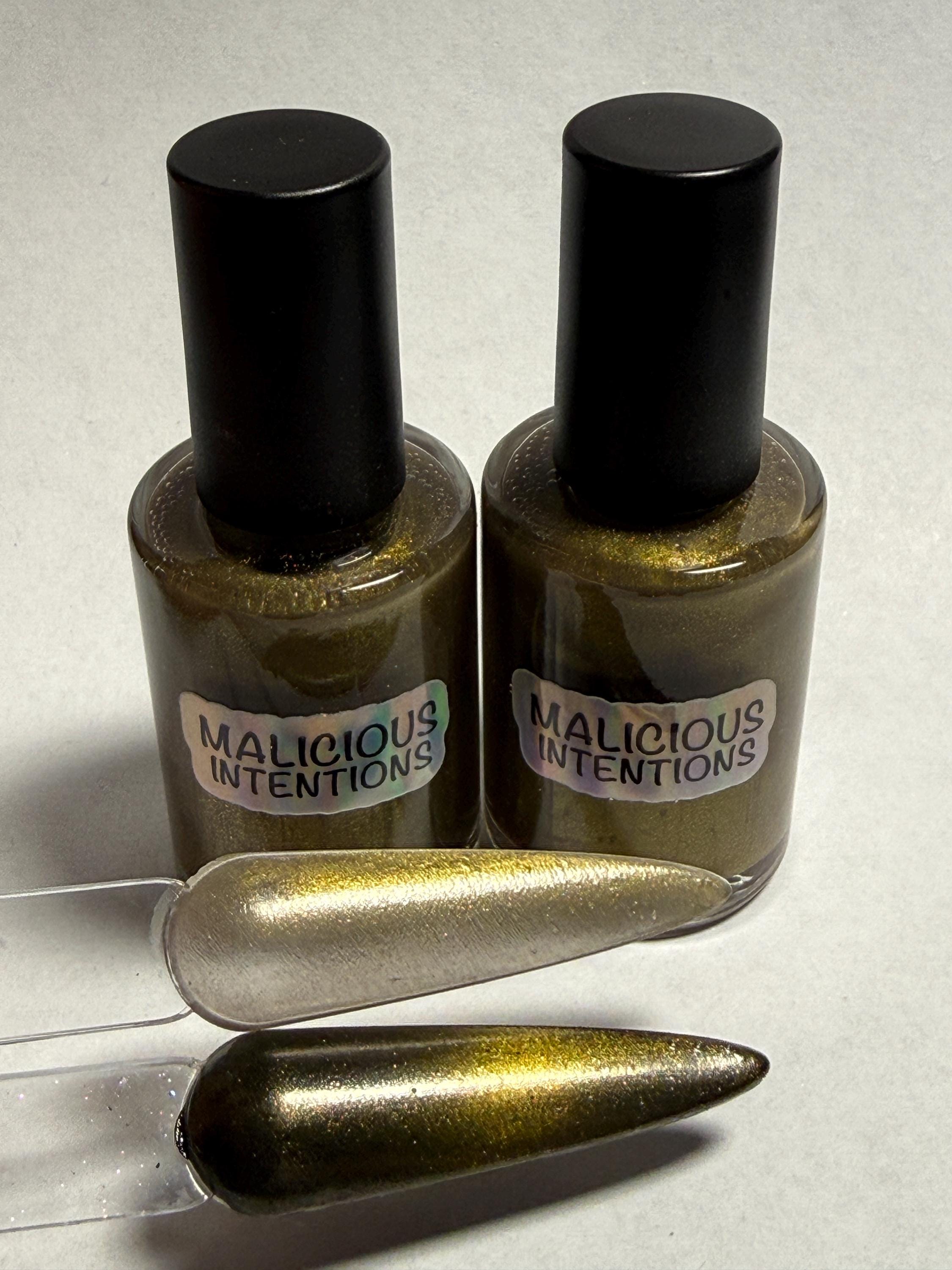 This polish comes in either 5ml or 15ml bottles and is a gold magnetic.