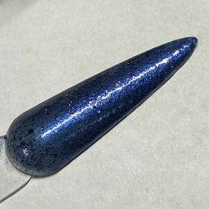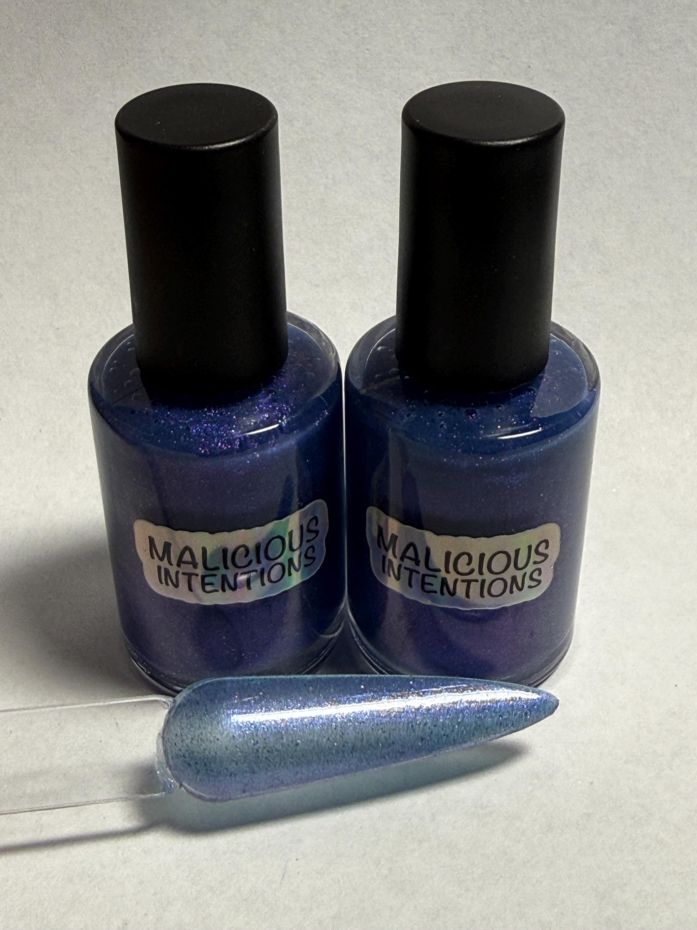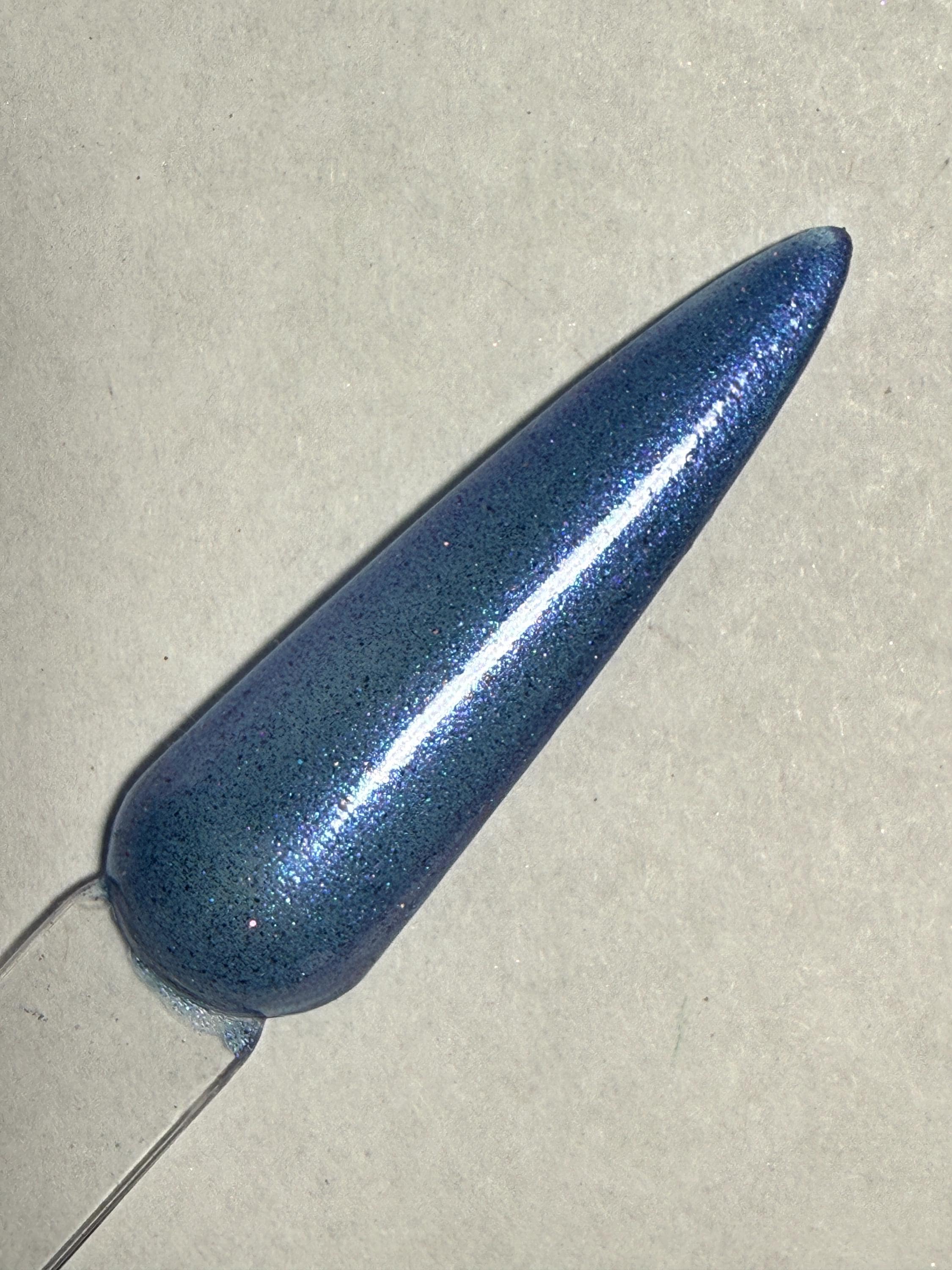 This nail polish comes in either 5 or 15ml bottles and has a blue base with a purple shift and very fine holographic glitter mixed in.