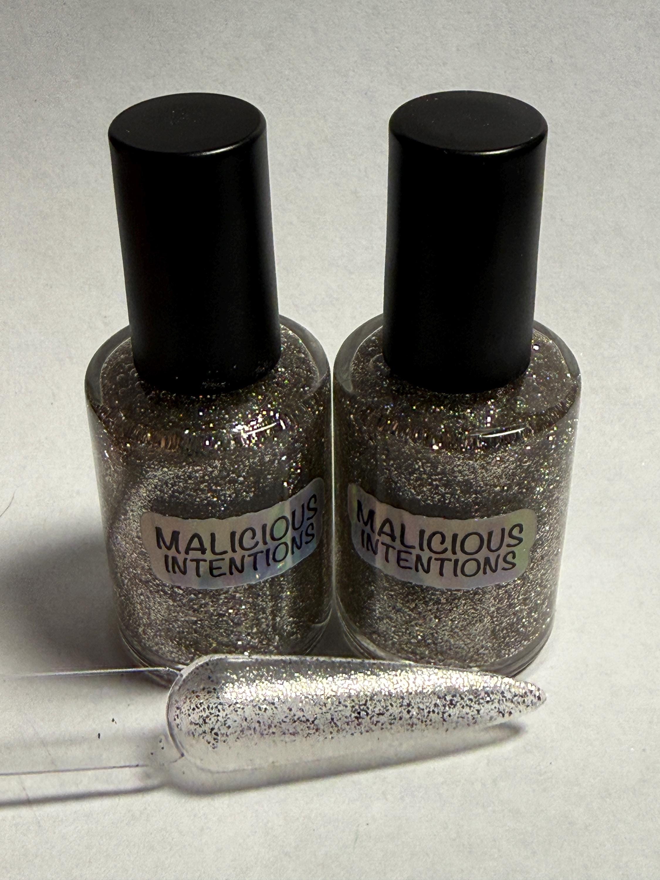 This nail polish comes in either 5 or 15ml bottles and has silver platinum pigments and flakes in three different sizes.