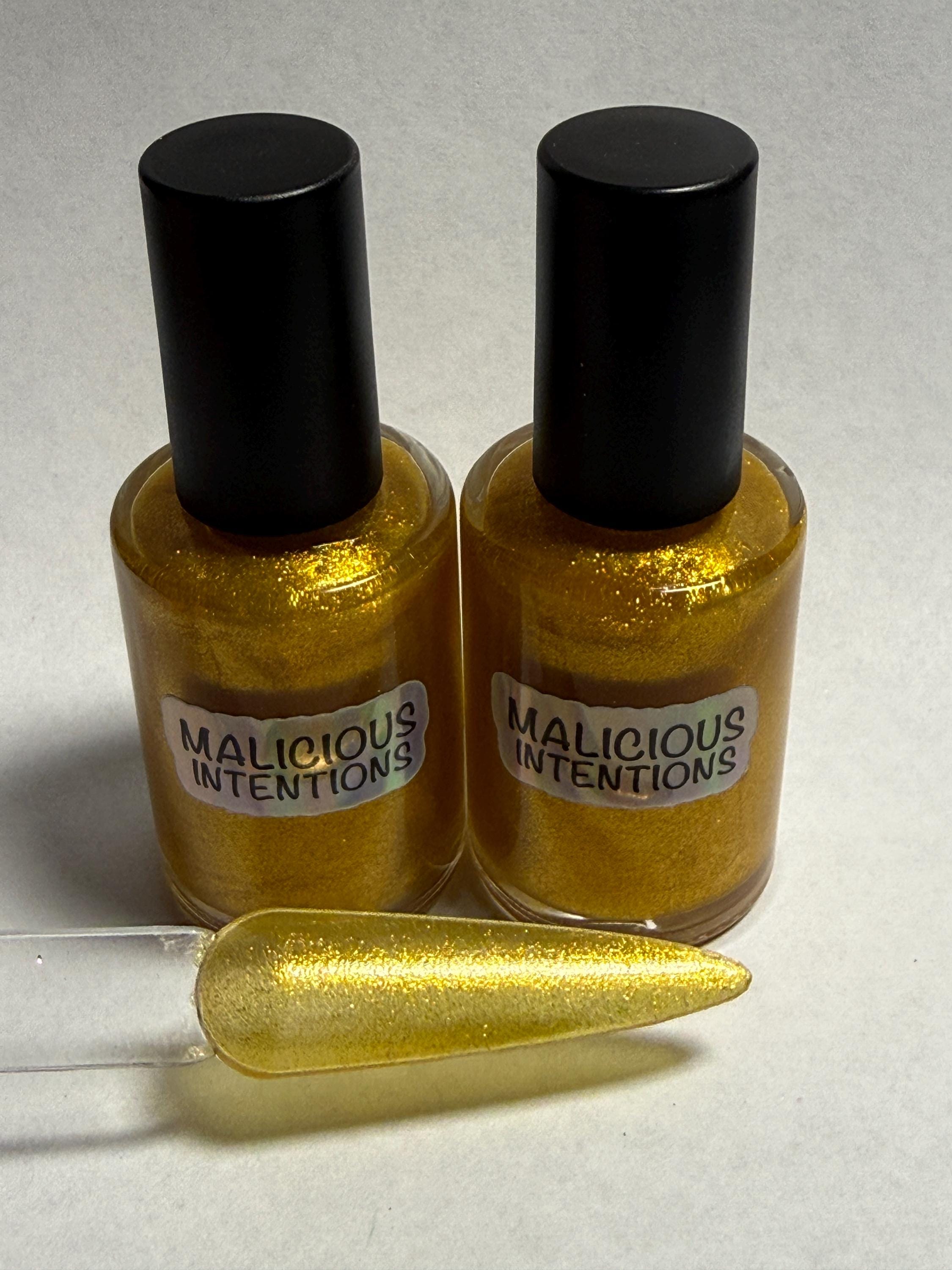 This nail polish comes in either 5 or 15ml bottles and is a yellow gold shimmer with a very light touch of ultra fine gold holo mixed in.