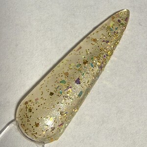 This nail polish comes in either 5 or 15ml bottles and is a very pale blue shimmer. Wear alone for a barely-there look or as a topper.