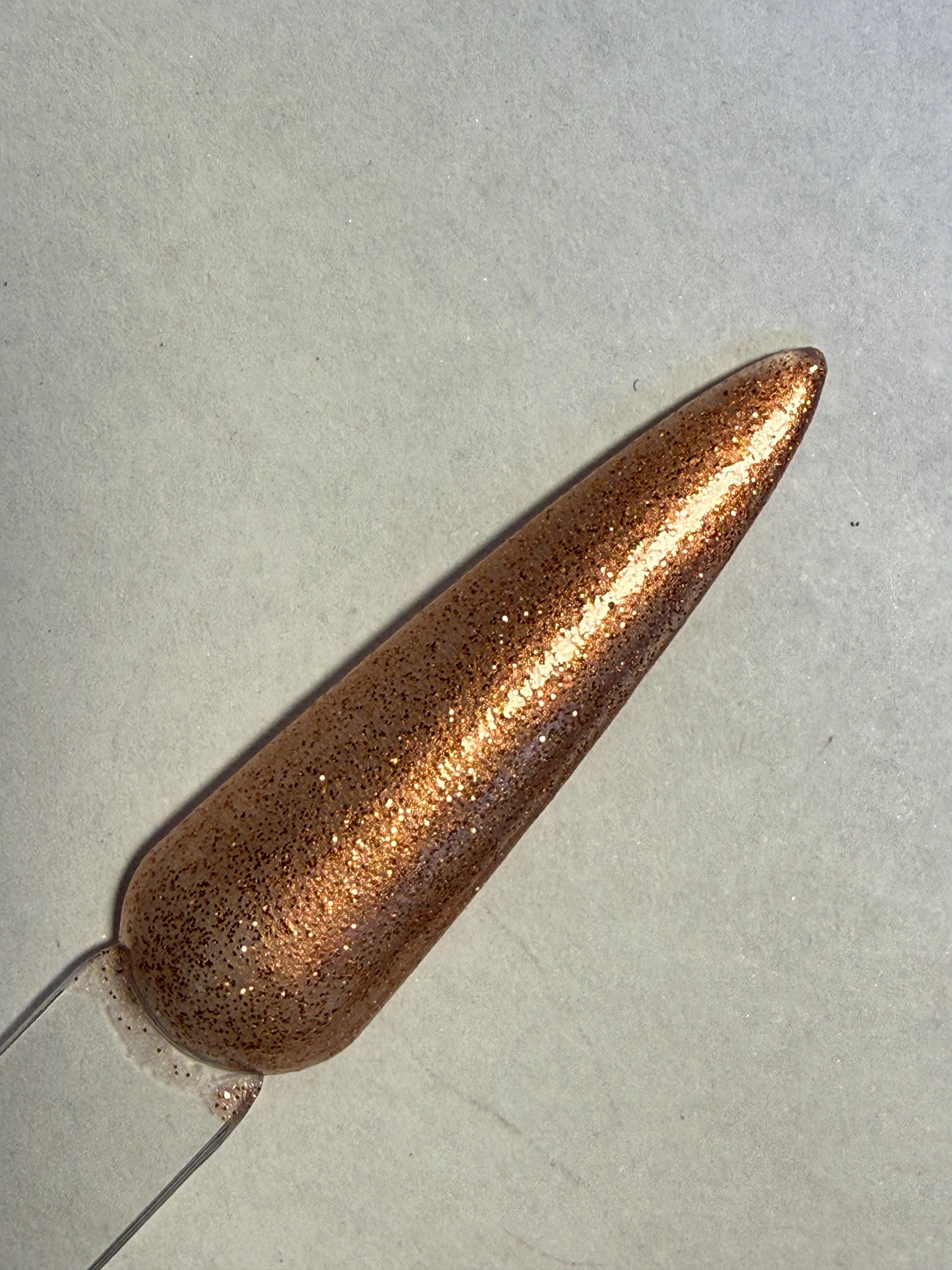 This nail polish comes in either 5 or 15ml bottles and has a rose gold foil base and fine rose gold glitter mixed in. A sister polish to FTW.